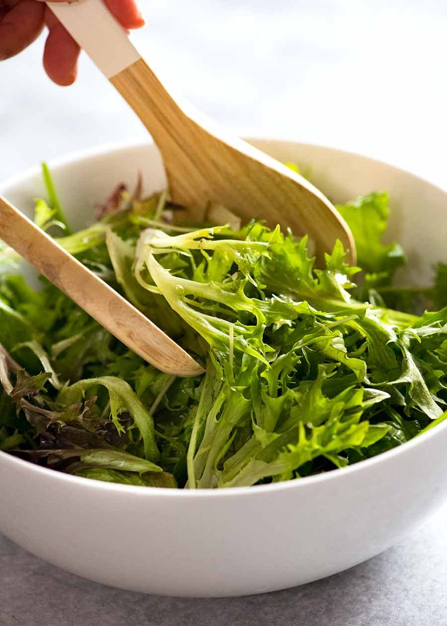 Dijon Mustard – this is optional but I pretty much always add a touch because it thickens the dressing a bit more which makes it coat the lettuce better.