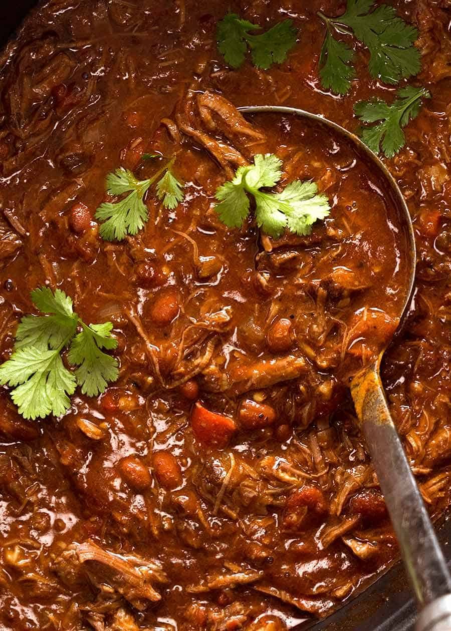 Slow Cooker Shredded Beef Chili is my signature Chili recipe made with pulled beef! With deeper, even more complex flavours than classic Chilli Con Carne, beef is slow cooked in a rich, heavily spiced sauce until it’s fall apart tender, then gently teased apart before being tossed back into the sauce.