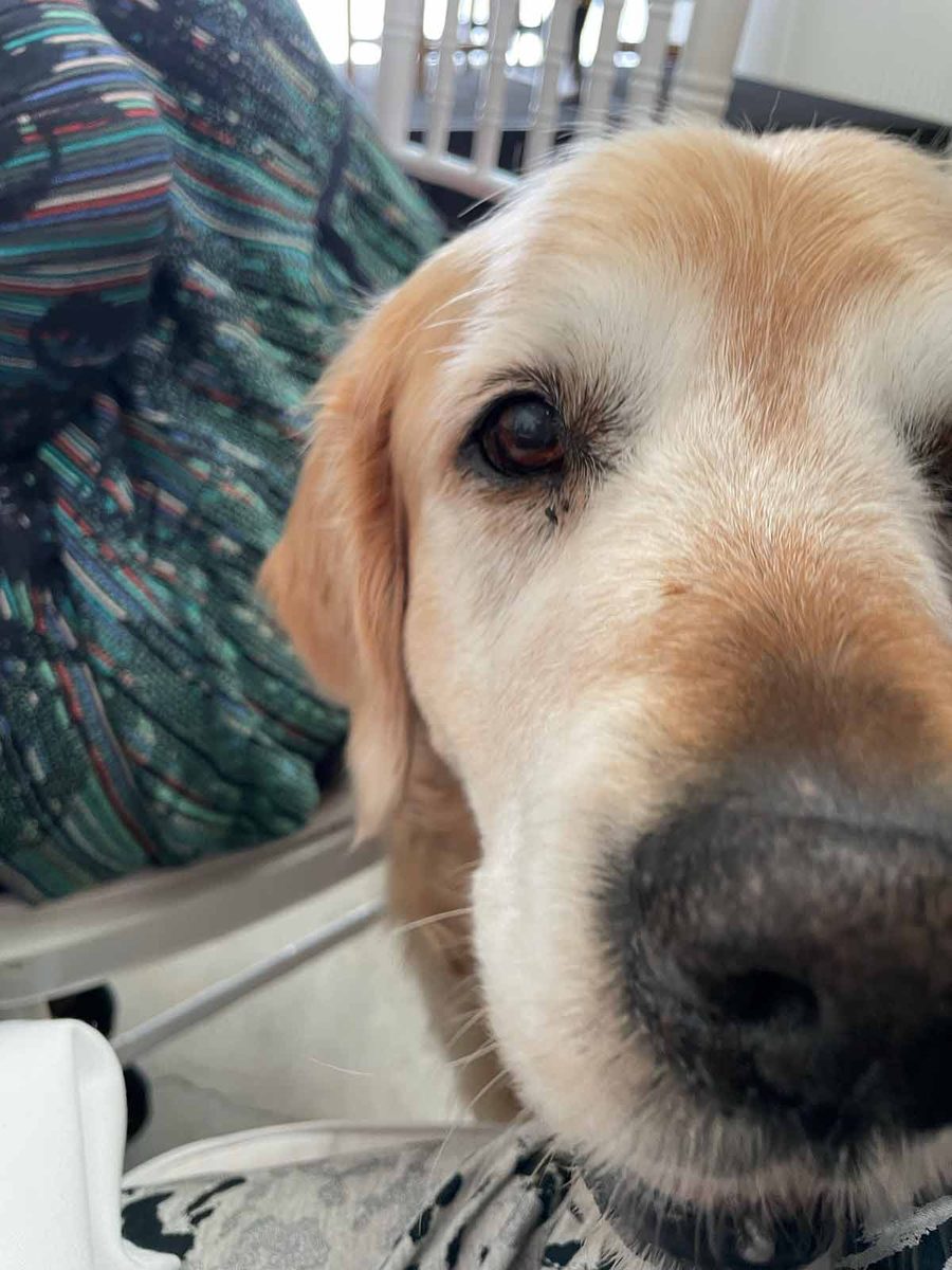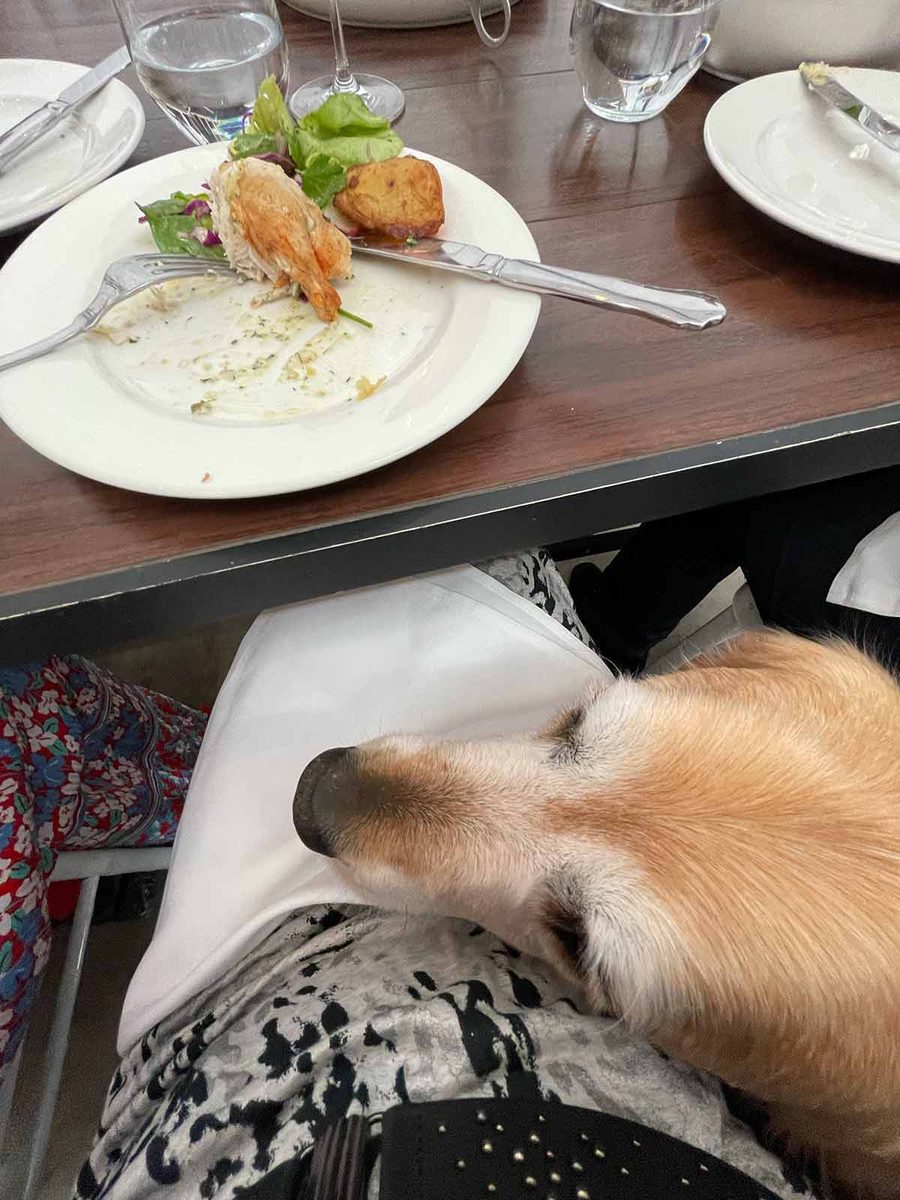 And here I am doing a talk during lunch with Rebecca Saunders, a professional speaker in Mudgee. Dozer is under the table, waiting for food scraps. 😂
