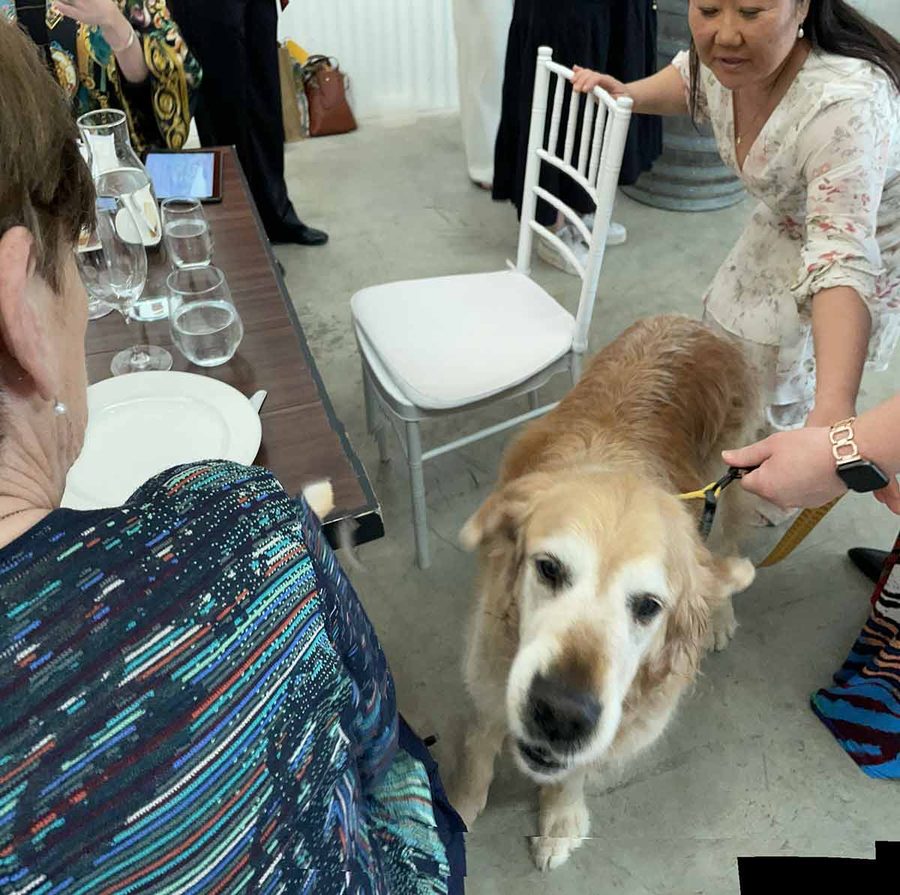 And actually, this is the only posed shot of Dozer and me together – at the very end of the lunch, when everything had been cleared away and all the guests had left. Ha ha!!! So typical of me!