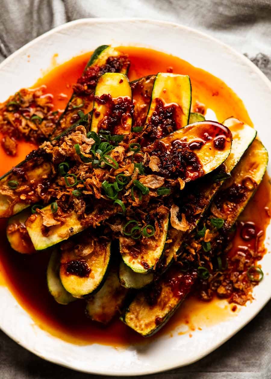 This is so delicious. Recipes for fried shallots (onions can be fried instead of shallots) are all over the internet and super easy. It just takes patience. The zucchini was slightly tender and nicely browned. The sauce was over the top. Went well with the Asian Chilli Chicken recipe. Noticed not a lot of views on the chicken recipe. Might be because “chili” is spelled wrong. Will make over and over, great way to get vegetables on your plate.