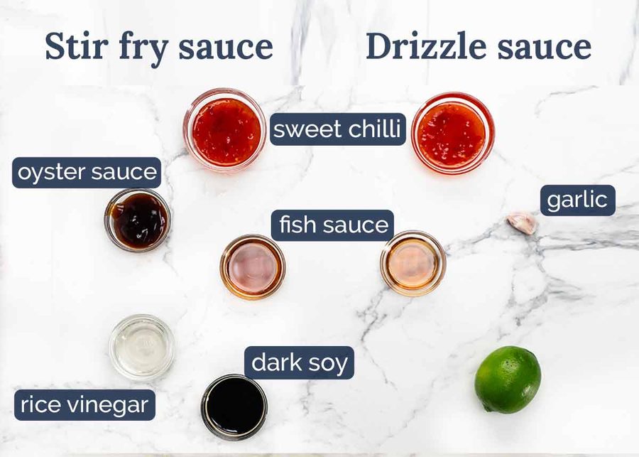 Dark soy sauce – This stains the beef a lovely rich colour and adds tasty soy flavour in a way you don’t get with regular or light soy sauce. But, if you don’t have dark soy sauce, you can use either of these (though the beef won’t be as dark). There will be a touch less flavour too but don’t be concerned, the drizzle sauce will make up for it.