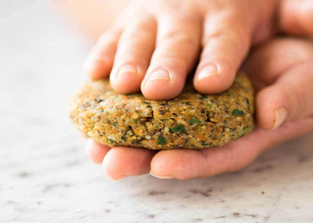 I know, I know, you want gigantic, super thick Veggie Burgers. I’ve been there, and discovered the hard way that you can’t be greedy when it comes to Veggie Burgers.