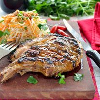 The pork is pictured with my Simple Asian Noodle Salad, a light, refreshing salad that’s fast to make and matches perfectly with this pork chop. Or try this with a side of Asian Slaw with Coconut Rice or a Cilantro Coconut Lime Rice! – Nagi x