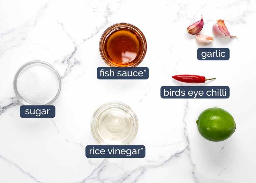 Here’s what you need to make nuoc cham sauce. Just mix together!