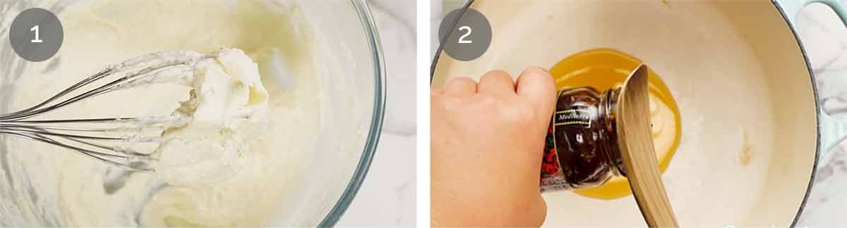 - Whipped ricotta – Put the ingredients in a bowl. Whisk vigorously for 10 to 15 seconds until it becomes the texture of softly whipped cream. Add milk to loosen, if needed.