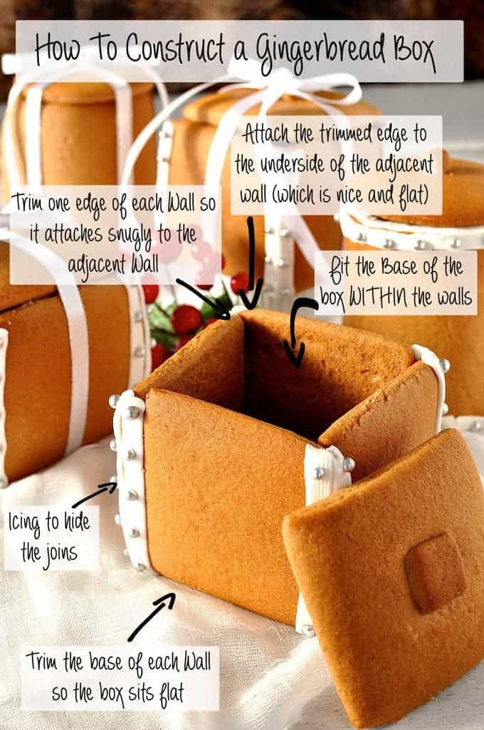 Gingerbread Cookies transformed into mason jars and boxes! No cookie cutter, mixer or any other special equipment required to make these. Fill with goodies for a completely edible homemade gift! Tip: The Mason Jars are easier to make because they don't require constructing! This recipe makes either 2 boxes or 2 mason jars. Please note: The gingerbread recipe used in this recipe is specific for this recipe. It is lighter than most gingerbread recipes (less butter, honey instead of molasses or golden syrup) so the Mason Jar doesn't slide down the can while baking (which is what happens if you use a gingerbread recipe with more butter in it). For Gingerbread Men and Cookies, use this Gingerbread Men recipe.