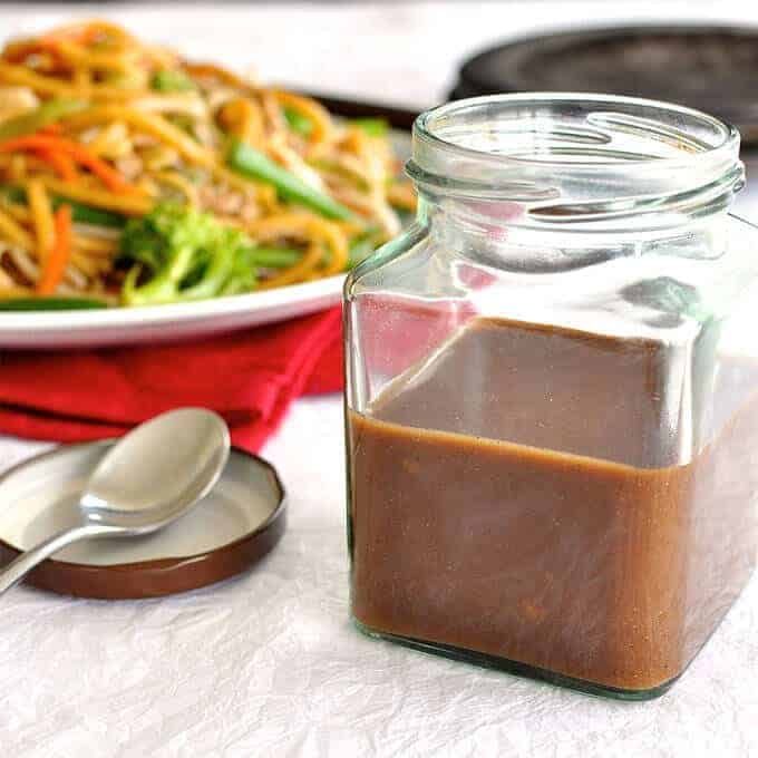 1. Light soy sauce is lighter in colour that the more common dark soy sauce, but it is actually saltier. The main reason for using light soy sauce in this recipe is so the colour is not as dark. Substitute with all-purpose soy sauce.I use Lee Kum Kee and Pearl River brands for the light soy sauce. 2. Noodles type - If using dried rather than fresh noodles, add a few extra tablespoons of water. The reason for this is that dried noodles, even after cooking them (usually just by covering them in hot water in a bowl), absorb more liquids than fresh noodles. So you need more liquid to have a saucier finish.3. Vegan - To make this sauce vegan, substitute the oyster sauce with hoisin sauce. This gives the sauce a slight Chinese Five Spice Powder flavour which is thoroughly authentic!4. Storage - This will last for weeks and weeks, depending on the expiry date of the ingredients you use. There is nothing in this that will go "off", so just check the expiry date of the ingredients you use in this, at use that as a guide. I usually use mine in about 4 weeks, but it will definitely last longer.If you have it in the fridge for ages untouched, then you will need a butter knife or something to mix up the cornstarch that will settle and harden in the bottom of the jar.5. Chinese Cooking Wine (Shaosing / Shaoxing wine) - this plays an important part in giving this sauce depth of flavour so it tastes like the sauce you get at Chinese restaurants. Without it, the sauce will lack "something". It's a cooking wine sold at supermarkets in Australia in the Asian section but much cheaper at Asian stores - here are the bottles I use. It has a very long shelf life - years and years (and it's used in 99% of the Chinese recipes on my site). Read more about Chinese cooking wine here.Best substitute is dry sherry, followed by Mirin or Japanese cooking sake. If you use Mirin, leave out the sugar in the recipe.However, for those who cannot have alcohol, apple juice or grape juice is the best substitute. Otherwise, chicken broth/stock, as a second fall back, with 2 teaspoons of white wine vinegar + 1/2 tsp sugar.IMPORTANT: If you use a sub, then the shelf life of the sauce will be determined by the shelf life of what you use as the sub.6. These quantities make stir fries that are nicely coated with sauce, but without pools of sauce. The stir fry is saucier than the noodles, so it soaks into the rice. With the noodles, the sauce clings to it really well so you don't need pools of sauce. If you want more sauce, increase the amount of Stir Fry Sauce used with double the amount of water e.g. If you add 1 tbsp Stir Fry Sauce, add 2 tbsp water.7. Nutrition per serving (1 1/2 tbsp used per serving for a stir fry)